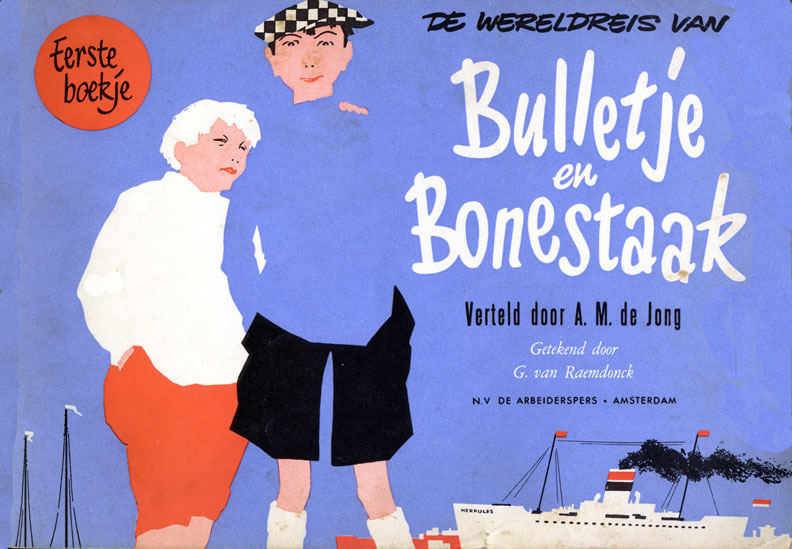 In 1922, A. M. de Jong and George Van Raemdonck teamed up again to create a children's comic for Het Volk. On 2 May 1922, the first episode of 'De Wereldreis van Bulletje en Boonestaak' ("The World Voyage of Bulletje and Boonestaak") appeared in print. Like most European newspaper strips at the time, it was a text comic, with text captions underneath the images. Unlike U.S. daily strips, which offered four or five panels, each 'Bulletje en Boonestaak' episode was two panels long. Underneath the first episode, the editor added the text "Uitknippen en bewaren" ("Cut out and keep"), almost as if he was aware how successful and historically important this series would become.