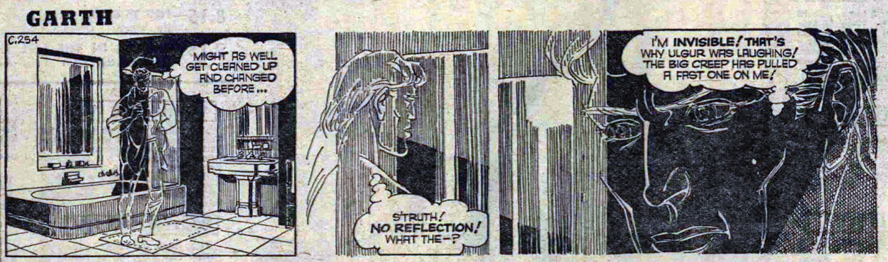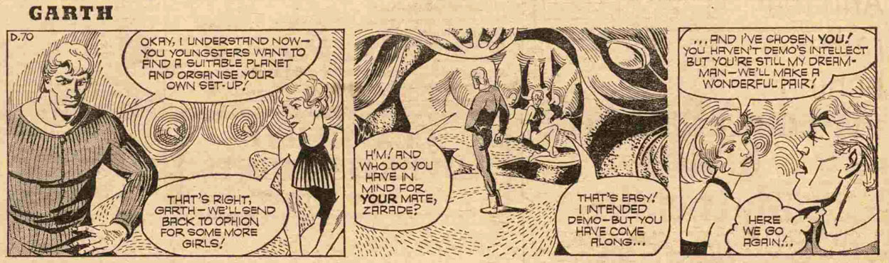 When in 1968, Steve Dowling retired from drawing 'Garth', John Allard succeeded him as artist, working with writer Jim Edgar. In 1971, Allard in turn was replaced by Frank Bellamy, although he continued to do background art during Bellamy's first couple of months. Between 1977 and 1983, Allard co-scripted 'Garth' with Jim Edgar. During its final years, the 'Garth' series was written by Angus Allan and Phil Harbottle and drawn by Martin Asbury.
