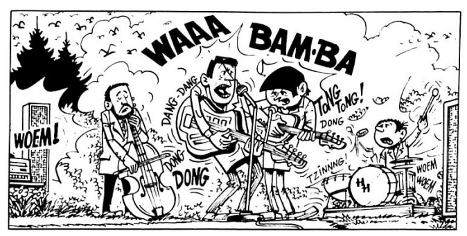 In the first issue of Strip, dated 1 September 1961, Kabou introduced the humor adventure series 'De Avonturen van Olivier', scripted by Karel Goderis. The series starred Olivier, a bald-headed uncle with a Chaplin mustache and his niece and nephew. The resemblance with Willy Vandersteen's 'Suske en Wiske' was hard to deny, in particular the dynamics between Olivier and the kids, which resembled that of Lambik with Suske and Wiske. Nevertheless, five stories were made, appearing in Ohee between 1965 and 1973. Goderis and Boumans also made 'Roel Harding' (1964-1966), of which three stories ran in Ohee!. 'De Hot Hitters' (1965), starring an aspiring pop band, was serialized in Strip in 1965, and ran in two issues of Ohee! in 1968. 'Bert Crak' (1967-1969), a humor comic about a failed handyman, was co-scripted by Goderis and Edwin Wouters. It subsequently appeared in four 1969-1970 issues of Ohee!.