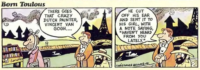Christopher Browne was born in 1952 in South Orange, New Jersey, but spent most of his childhood in suburban Wilton, Connecticut. His father was the newspaper cartoonist Dik Browne, and his brother Chance Browne later also worked in the cartooning industry. In addition, his aunt Annette T. Rubenstein, worked as a scriptwriter for the Classics Illustrated comic book line. Later in life, Chris' stepdaughter Ashley Browne was the daughter of cartoonist Ralph Smith, best-known for 'The Grizzwells' and 'Through Thick and Thin'. Ashley later married Dan Piraro, author of the 'Bizarro' cartoon feature. Besides his father, Chris Browne ranked Charles M. Schulz and Lynn Johnston among his favorite cartoonists.