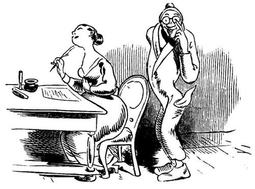 Towards the end of his career, Busch became more self-reflective. He wrote and illustrated two picture stories with a semi-autobiographical, even bitter streak. In 'Balduin Bählamm, der verhinderte Dichter' (translated as 'Clement Dove, the Poet Thwarted', 1883) and 'Maler Klecksel' (translated as 'Painter Squirtle', June 1884), Busch respectively satirizes a writer and painter who fancy themselves as geniuses whose works will enlighten mankind, but are in reality pretentious dreamers who hardly get any work done since real-life problems constantly interfere. The writer has to take care of his family and pay his bills. The painter leads a life of debauchery, protected by a rich female patron, yet eventually gives up his artistic aspirations to take over his father's bar. While Busch mocks creative amateurs like himself, he also ridicules art experts who only consider a work "valuable" after seeing how much it is worth.