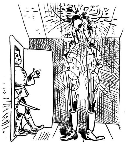 In 'Der schöne Ritter' ("The Handsome Knight", issue #1181, 1868), a man finds out that wearing a knight's outfit is very impractical when going to a bar, or trying to sleep in his bed. With 'Der Partikularist' ("The Particularist", issue #1324, 1870), Busch commented on the Franco-Prussian War (1870-1871). A German sympathizes with the French army and cheers whenever they are victorious. When the Prussians win, he gradually transforms into a donkey. Another satirical look at the changing times is 'Ehre dem Photographen! Denn er kann nichts dafür!' ("Honor the Photographer! It's Not His Fault", issue #1336, 1871), in which Busch mocks the new artform of photography, particularly its inability to capture people who don't sit still in front of the camera. Several panels visualize photographic mistakes by showing overlapping images of the same people. Busch's final story for Die Fliegende Blätter, 'Der hastige Rausch' ("The Hastily Rush", issue #1346, 1871), features a drunk restaurant visitor being thrown out for harassing the waitress and another customer.