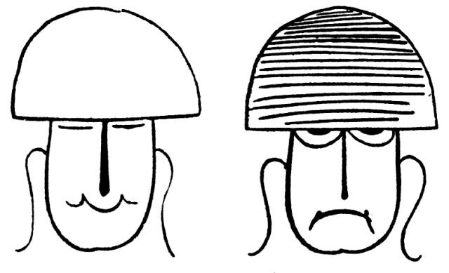 Particularly interesting is 'Anleitung zu historische Porträts' ("Introduction to historical portraits"), in which Busch shows several out-of-context scribbles, allowing the reader to guess who he is portraying. One mushroom-shaped face is revealed to be Napoleon, though with an important distinction. When the figure smiles, he is at Austerlitz, when he looks depressed, he's at Waterloo. The other two scribbles reveal "der alten Fritz" (Frederick the Great) and French ex-emperor Napoleon III. In 1870, Busch had already published a variation of these graphic riddles.