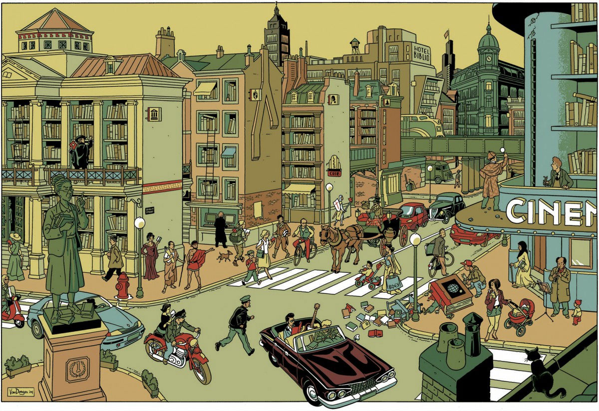 "Library street", illustration by Peter van Dongen.