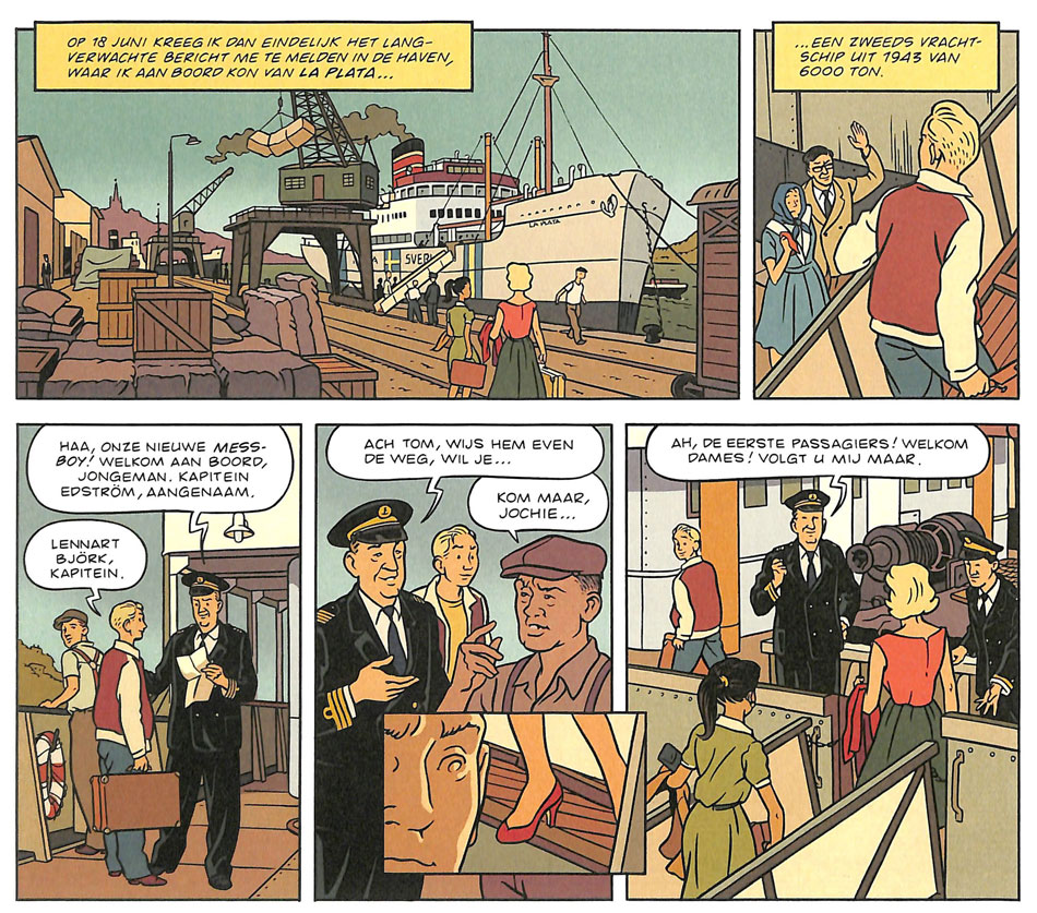 After finishing his 'Rampokan' diptych, it again took several years before Van Dongen's next comic. Commissioned by the clothing brand Gant International, he created 'Drie Dagen in Rio' ("Three Days in Rio", 2013), a story loosely based on an event from the traveling early years of Gant's retiring director Lennart Björk. Besides a Dutch release by Oog & Blik/De Bezige Bij, the book was also translated into English and Swedish for the Gant stores worldwide.