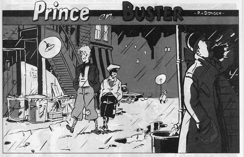 Through his friend Willem Vleeschouwer, Peter van Dongen was introduced to the editors of Wordt Vervolgd magazine, the Dutch edition of the Belgian comic magazine (À Suivre). At age nineteen, he was the youngest artist to debut in its pages with the two-page Great Depression-era story 'Prince en Buster' (issue #63, June 1986). Until early 1987, the characters reappeared in subsequent issues in three back-cover stories promoting the magazine's subscriptions.