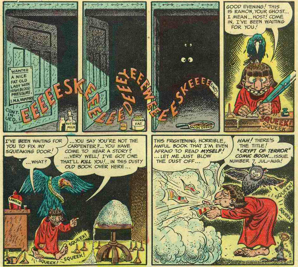 'Outer Sanctum' (Mad #5, June 1953). Note the mention of "chicken fat" in the second panel.