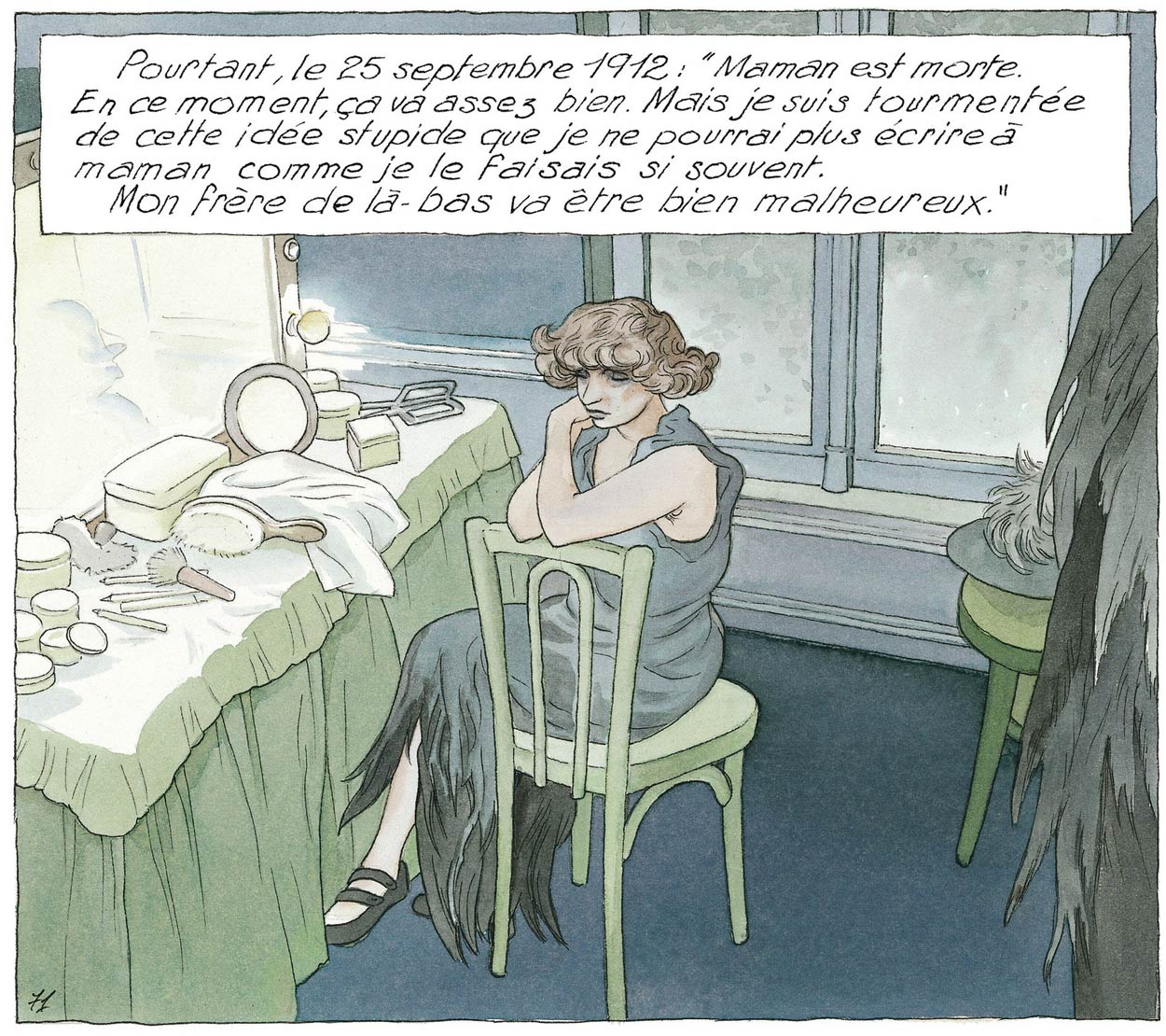 With writer Rodolphe she created the one-shot 'Marie-Antoinette, La Reine Fantôme' (Dargaud, 2011), about a paranormal artist who is entrusted with a large secret by the ghost of Marie-Antoinette. She returned to comics biographies in 2013 with 'Jeune fille en Dior' (Dargaud, 2013), a critically acclaimed comics documentary about fashion designer Christian Dior and the world of haute couture through the eyes of a journalist in the 1940s. Her final work was a comics biography of French novelist Colette (1873-1954), which was published by Dargaud as 'Les Apprentissages de Colette' in 2017.