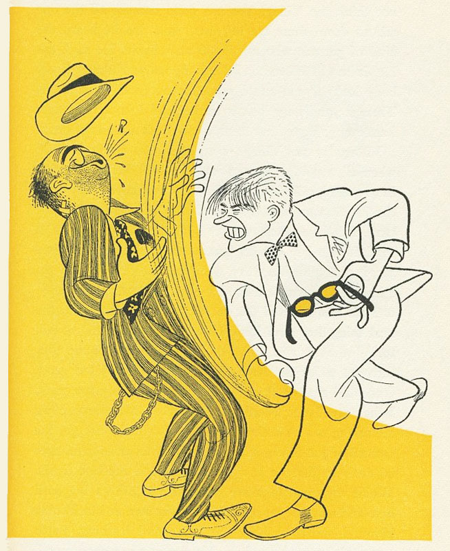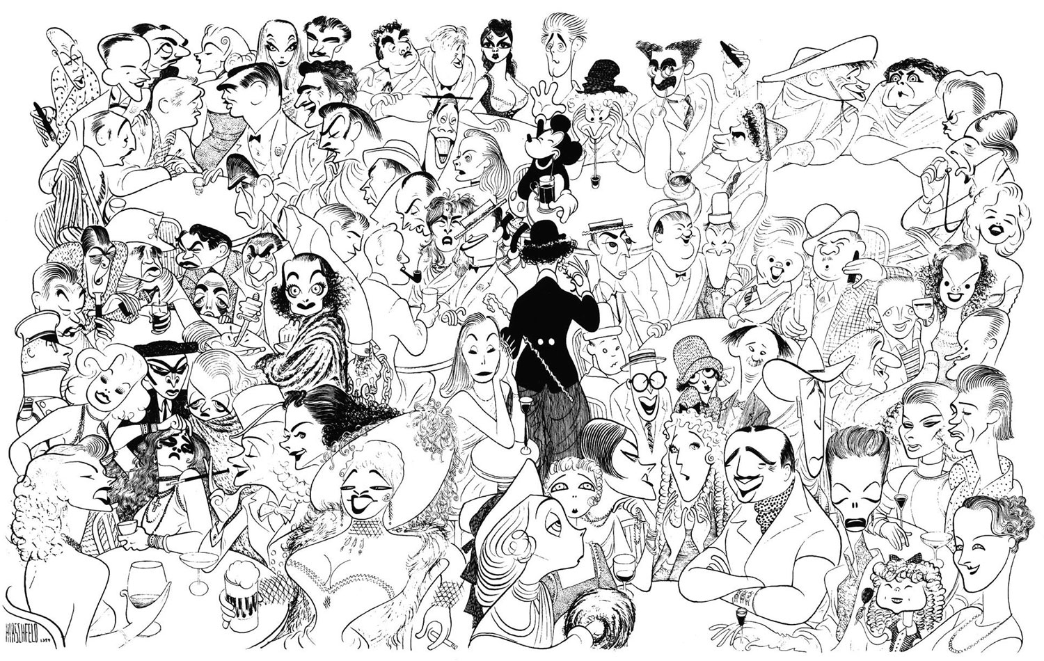 In 1920, the 17-year old Al Hirschfeld became art director for film studios like Goldwyn Pictures, Metro Pictures (who later merged to become MGM), First National (later Warner Brothers), Pathé and Selznick Pictures. He mostly designed film posters for Hollywood comedies, already caricaturing actors like Charlie Chaplin and Buster Keaton. At Selznick, he was put in charge of his own art studio, which employed various artists. Unfortunately, Selznick Pictures went bankrupt in 1924, leaving Hirschfeld in tremendous debt. Thanks to a new job at Warners, he was able to pay everything off, but vowed to never work for anybody or have anybody under his employ again. Indeed, for the majority of his career, he was a freelance artist.