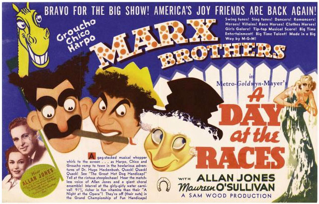 Film poster for 'A Day At The Races' with The Marx Brothers, designed by Al Hirschfeld.