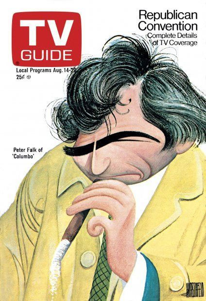 TV Guide cover 14 August 1976 with Hirschfeld drawing of Peter Falk as 'Columbo'.