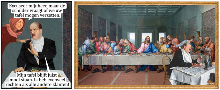 "Excuse me sir, but the painter asks if we can move your table." "My table remains where it is! I have just as much right as other customers!"