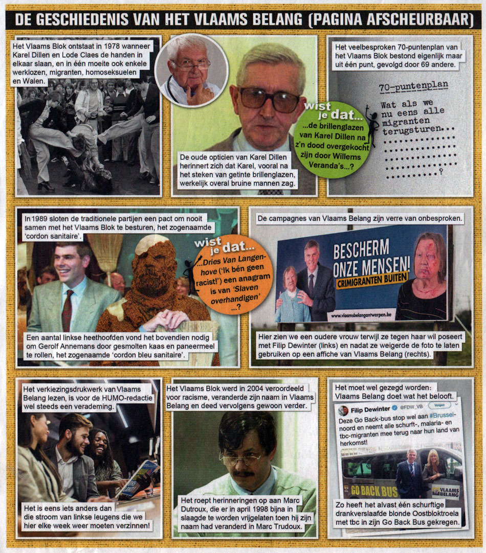 'Het Gat van de Wereld' from Humo #4109, 4 June 2019, poking fun at the Flemish extreme-right party Vlaams Belang.