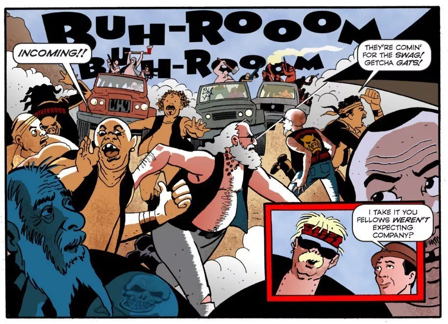 Lash continued his political satire with 'The First Gentleman of the Apocalypse' (August 2015) for David Lloyd's international webcomic magazine Aces Weekly. Set in the not-too-distant future, the comic strip takes place in a post-apocalyptic world, ravaged by the U.S. government becoming too intrusive on its citizens. Many people now work for the state, but a few people still keep their own enterprises running. Two of them are the trader Madison Dane and his strong valet Mr. Abraham who travel the country in a double-decker bus. Lash stated that he didn't target any particular presidential administration, since the idea of the comic came to him when president George Bush, Jr. was still in power.