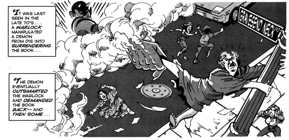 While Lash wasn't a real lawyer, he certainly had the same dedication and verbal passion. 'Wolff & Byrd' ran in the Brooklyn Paper until 1996, almost 18 years on end. Between 1983 and 1997, it was picked up by another weekly, National Law Journal, which allowed the series to be published nationally. It finally reached the right readership, but otherwise remained unknown outside this niche. Andrion Books released the first book collection in 1987. Lash went through great lengths to promote his signature series, from introducing it at conventions to hand-selling it in the street. He drew 'Wolff & Byrd' stories for such publications as Polyhedron, American Fantasy, Monster Scene and indie comic books such as 'Satan's Six'(Topps), 'Doc Stearn... Mr. Monster' (Eclipse), 'Munden's Bar' (First Comics), 'Frankie's Frightmare' (Cat's Paw Comics), 'Crack-a-Boom' (Caliber Press), 'The Big Bigfoot Book' (Mojo Press) and 'Panorama' (St. Eve Productions). He took the time to redraw older episodes when he felt they could be improved. Slowly but surely, its readership increased, following Lash's personal motto: "One reader at a time." Many were impressed that Batton Lash managed to keep his black-and-white comic strip running for decades, despite not appearing in mainstream publications, all through pure self-promotion and -publishing.