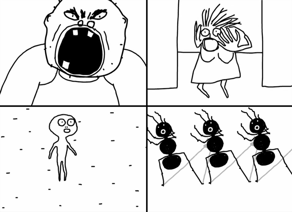 Like his films, Lynch has given few explanations about 'The Angriest Dog in the World'. But being created in the same period as 'Eraserhead', the comic shares a similar feeling of suburban dread and inability to take life into your own matters. From a young age, the director always felt anxious about the happy facade surrounding the seemingly idyllic neighborhood where he lived. Behind people's doors, there were often far more unpleasant things going on, shielded from the outside world. When he settled down in Philadelphia, thrust into a family life, Lynch felt trapped in a similar, dull, monotoneous existence. And when he worked on 'Eraserhead', it sometimes felt as if he barely made progress on his film. In his book 'Catching the Big Fish', Lynch gave an additional clue on how to interpret 'The Angriest Dog in the World'. He claimed the dog was angry, because "it's the environment that's causing his anger… he hears things coming from the house."
