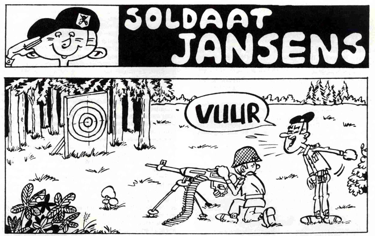 In 1970, Merho applied for a job as assistant at the Vandersteen Studios, at the time the most important and lucrative comic studio in Flanders. As luck would have it, one of their long-time collaborators, Eduard De Rop, had just quit earlier that afternoon. Merho was promptly hired and instructed to ink stories of the humorous superhero series 'Jerom', a spin-off of Vandersteen's signature series 'Suske en Wiske'. Two different versions of 'Jerom' were made at the time, one for the Dutch-language market, the other for German magazines. Merho worked on the German-language series. While he was honored to work for one of his childhood idols, he was drafted into military service after three months. He found a creative outlet through the gag comic 'Soldaat Jansens', published in the base paper. The title was later changed to 'Jager Jansens', since his character's uniform resembled the military rank 'jager' (part of the infantry) more than a common soldier. By volunteering to take care of the military library, Merho could stay away from pointless drills and find excuses to leave the base from time to time, "to buy necessary accessories". After being discharged, his 'Jager Janssens' comic was continued by another future comic talent: Hec Leemans.