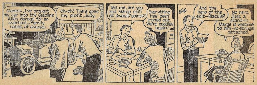 In 1986, Moores passed away from liver and kidney failure, causing Scancarelli to continue 'Gasoline Alley' completely. As of today, he still does. In 2012, IDW collected Dick Moores' 1964-1965 run on 'Gasoline Alley' in their Library of American Comics.