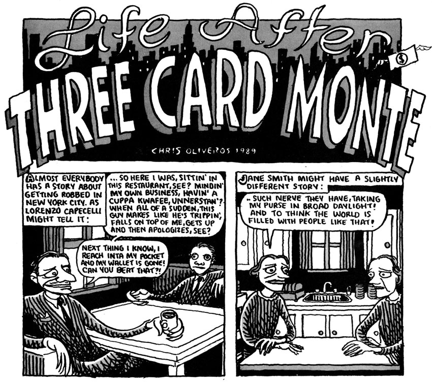'Life After Three Card Monte', comic story by Chris Oliveros for the first issue of Drawn & Quarterly (April 1990).