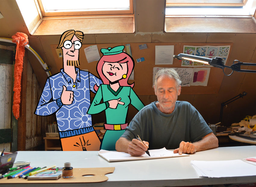 Based in the southern city of Sittard, Wout Paulussen has been mainly active as a commercial artist. His assignments have included character designs for advertising campaigns and corporate mascots, murals as well as cartoons and illustrations for newspapers and magazines. Since the mid-1980s, an important part of Paulussen's workload has been creating greetings cards for Paperclip International, making about 2,000 cards over the next decades. For the comedian Herman van Veen he designed the character of 'BB de Beer', a giant teddy bear from outer space. During the 1990s, Van Veen used the character in his stage shows, as well as a short-lived 1993 television series. Other notable characters created by Wout Paulussen were 'Prins & Ploes' for Prins petfoods, which have appeared in both drawn and puppet versions in TV clips, a 2006 musical, merchandising, coloring pictures, a board game, comics and a reading book.