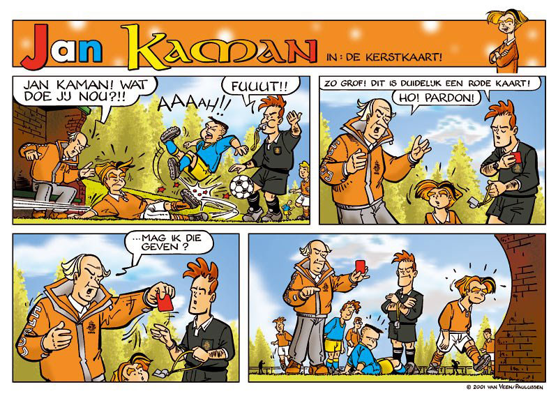 In 1995, Wout Paulussen and Dick Briel succeeded Steven Dupré and Ruud den Drijver as, respectively, artist and writer of 'Max & Mummie' (1995-1996), a comic set in a horror amusement park, published in Veronica Magazine. In 2000, their episode 'Wereldwonderen' was collected in book format by Bee Dee. Together with Dutch entertainer Herman van Veen, Paulussen created the football comic 'Jan Kaman', starring a young soccer player with a Dutch mother and Turkish father. Starting in 2001, the comic appeared in Voetbal Totaal and its successor De Bal, the members' magazine of the Dutch soccer association KNVB. In 2005, Paulussen was succeeded as artist by Wilma van den Bosch, who made the comic with writer Jan Bart Dieperink for another two years.