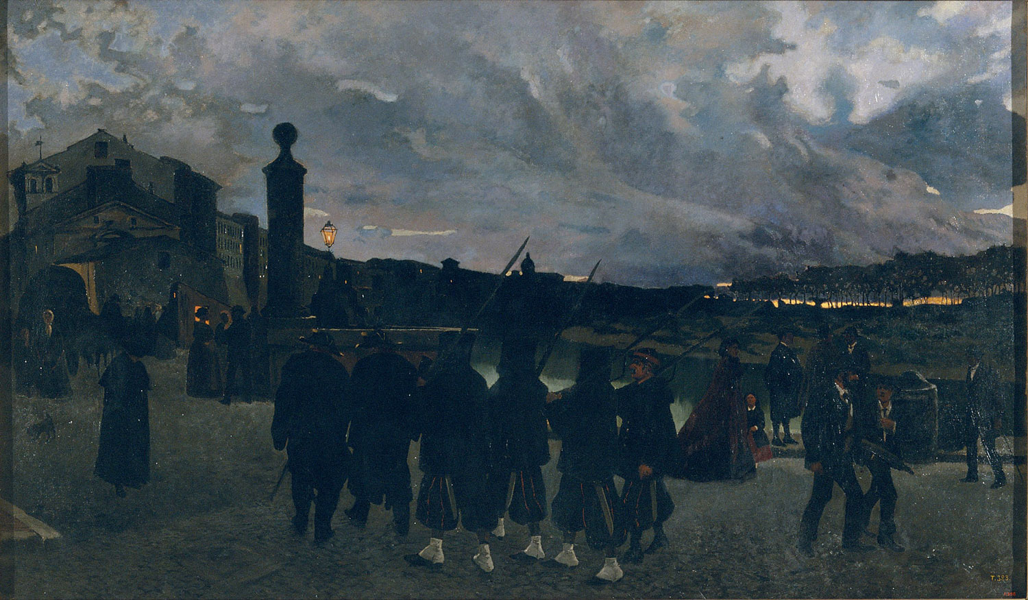 José Luis Pellicer Feñé (Josep Lluís in Catalan) was born in 1842 in Barcelona. He initially intended to become a surveyor, but chose art studies instead. He was educated by the Realism painter Ramón Martí Alsina, who also became his father-in-law. In 1865, Pellicer made a voyage to Rome, where he stayed three years to finetune his craft.
