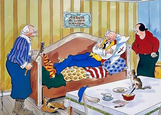 Persson's first creation for the magazine was 'Herr Larsson' (1965-1967). He abandoned this character after two years, when he was asked to take over his father's comic about the ever-lazy 'Kronblom'.