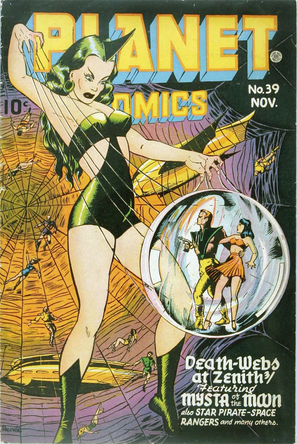 Cover illustrations for Planet Comics #39 (November 1945) and Fight Comics #47 (December 1946).