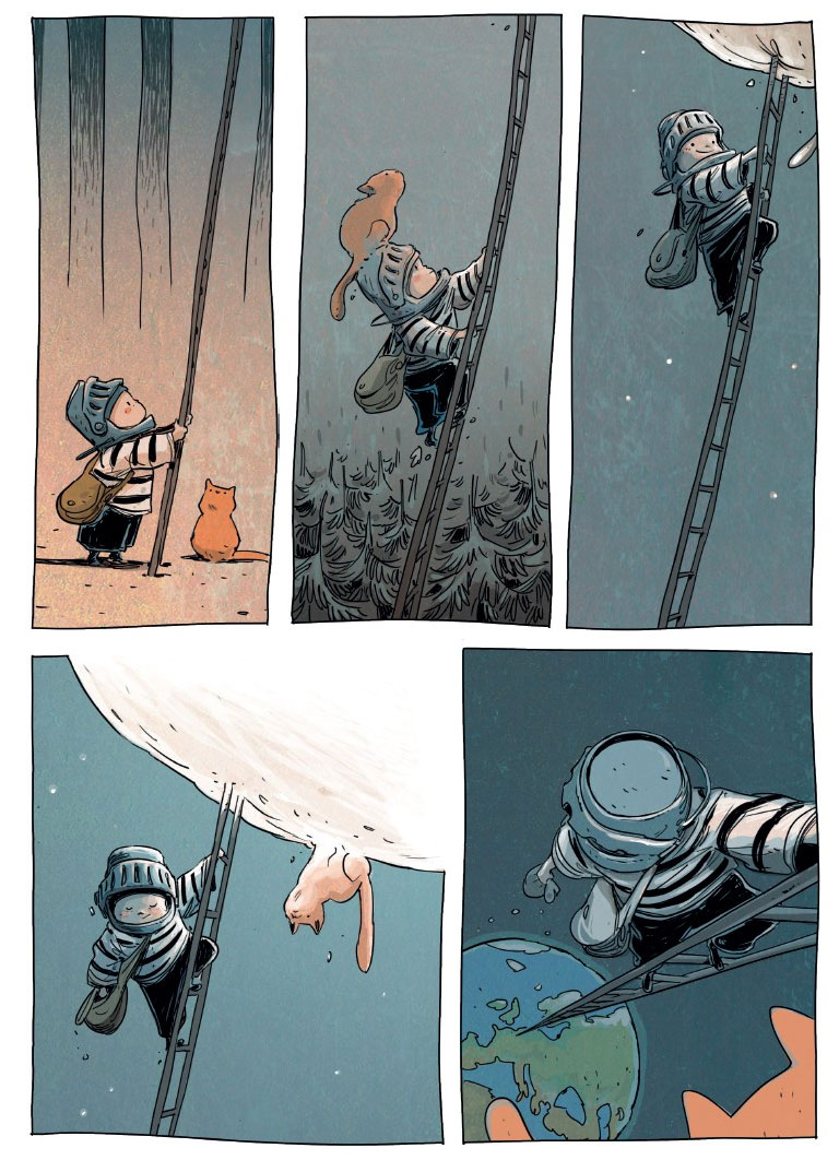 Through Facebook, Stedho was approached by the French scriptwriter Maxe L'Hermenier to work on a series of comic adaptations of youth literature for Éditions Jungle. Between 2019 and 2022, they created two volumes of 'Fils de Sorcières', based on the fantasy book by Pierre Bottero, as well as an adaptation of Jean-Claude Mourlevat's 'L'Enfant Océan' (2020). On his own, Stedho created the magical one-shot 'Adam Quichotte' (Jungle, 2020), about an inventive and adventurous little boy.