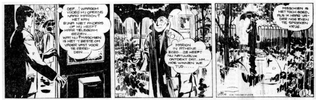 Redrawn version of strip 101 of 'Martin Evans - Het Venuskruid' by Thé Tjong-Khing and Dick Vlottes (De Stem, 1958).