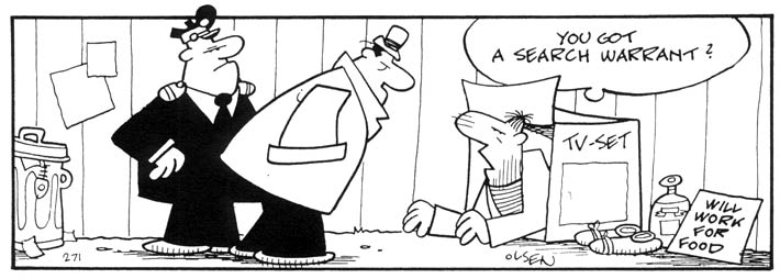The 'Crime Quiz' was not Wejp-Olsen's first publication in the USA, however. His comic 'Granny and Slowpoke' was distributed to about 40 US newspapers by Field Enterprises from 12 July 1976 until 1977. The main character was a cigar-chomping lady, who lives together with her daughter, grandchildren and dog. The artist deliberately chose a positive approach for this family comic, although the elderly title character was non-conformist and a rebel against authority. The daydreams of the dog Slowpoke provided an extra fantasy element. Despite WOW's obvious influences from US cartoonists like Mort Walker and Dik Browne, it didn't really catch on in the USA. The US strip was canceled after only a year, after which the artist reprised it in Denmark as 'Momsemor' in 1977. It has remained in print in Scandinavia for many years. In Sweden, it for instance ran in Lilla Fridolf, Expressen and Nya Wermlandstidningen, while in Denmark it was published in the weekly Hjemmet magazine.