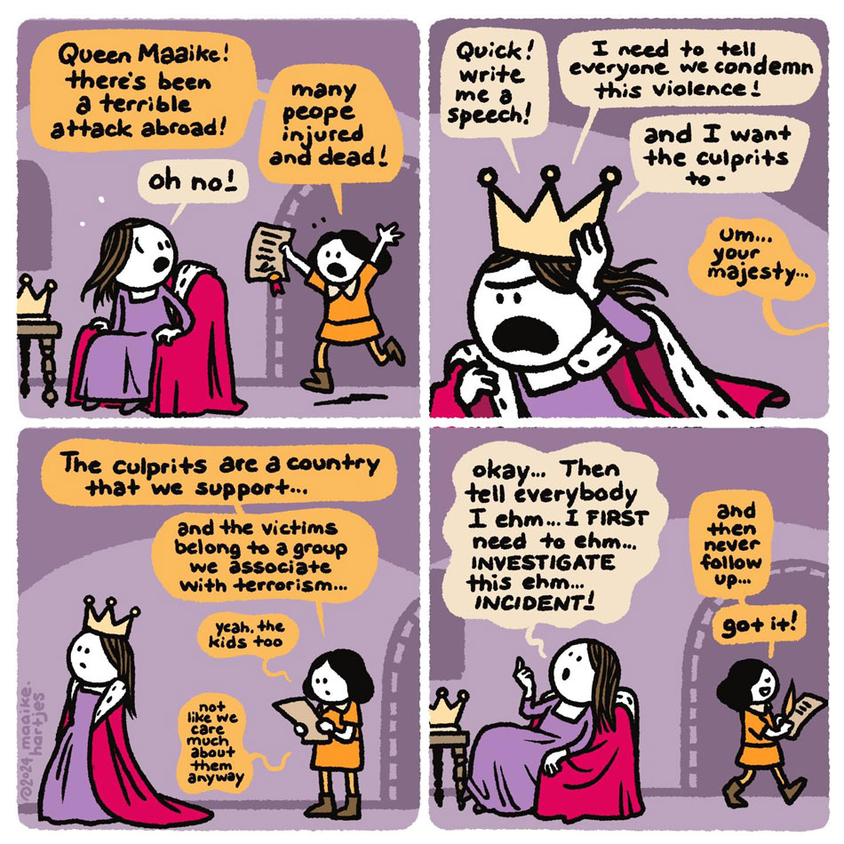 Some of Hartjes' strips cover more serious issues, in this case the death of the three-year old daughter of her friends.