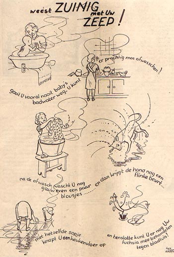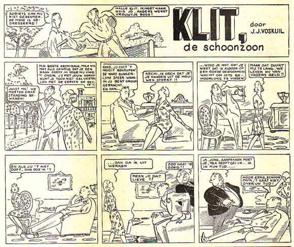 Het blad bevatte slechts sporadisch strips. Illustraties werden verzorgd door H. Moerkerk, Piet Broos, Frans Piët en Henk Rotgans. Van Nederlandse bodem waren strips als 'Tirélatijn en zijn toover', een tekststrip uit 1927 van ene Menno, 'Gloof ut of gloof ut niet' van Frans Meijer (1929/1930), 'Hein Snuffel, Grepen uit het Leven van een Held' door Frans Lammers (1936-1937), 'Barak 11' van Hans Husslage (1940), 'Jossie Jovel' van Frans Piët (1941) en 'Klit, de schoonzoon' door J.J. Voskuil (1941). Ook Ton Smits leverde strips, die hij signeerde met Tommy.