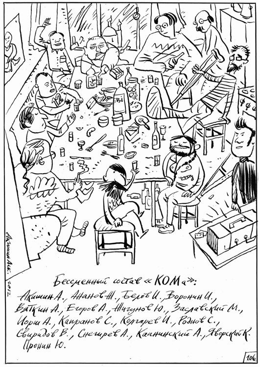 After difficulties finding work in the early post-Soviet era, Akashin has focused on illustration work, doing an occasional comic story for the Russian Comics Corporation RKK. His story about suburban conflicts, 'Bad Company', was published in Big City in 2003. He is a contributor to the children's magazine Geolënok and the newspaper Stupeni Orakula. He chronicled his experiences from his childhood, summer camps, military service, study and his time with KOM in his 140-page graphic novel 'Moja komiks-biografija' ('My Comics Biography').