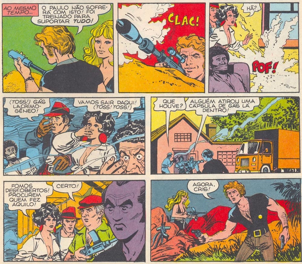 In addition to his work for RGE, Amaral drew for a couple of other publishing houses in the 1960s and 1970s, including the previously mentioned Saber. In the mid-1960s, he drew the adventures of 'O Vingador', the masked cowboy created by Hélio Porto, for Editora Outubro. For Editorial Taika, he drew for the sole issue of 'Zhor, O Atlanta' (1973), a sword and sorcery comic book written by Francisco de Assis P. da Silva. In November 2017, this comic book was reprinted by Criativo Editora. Between 1973 and 1975, the artist drew about a dozen stories with Walt Disney's 'Zorro' for Editora Abril, most of them written by Primaggio Mantovi or Ivan Saidenberg. With writer Octaviano Ribeiro, he was also present in Abril's short-lived comic magazine Crás! (1974-1975) with 'Alex e Cris', a sexy secret agents duo inspired by the 1960s British newspaper comic 'The Seekers' by John M. Burns.