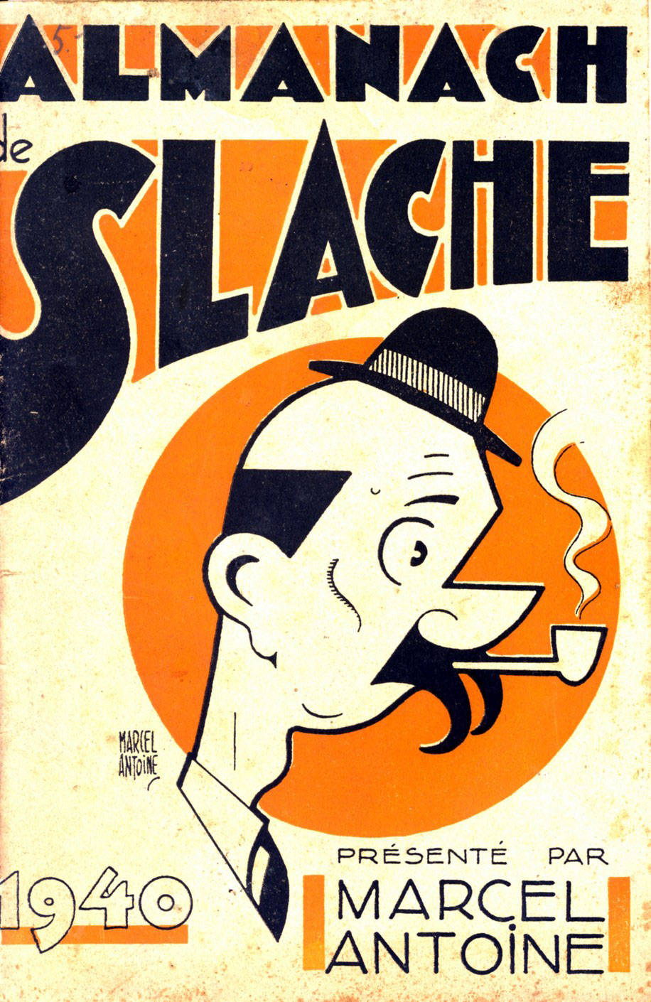 In 1940, Antoine also launched a humorous magazine, Slache, presented as a spoof of an almanac, complete with parodies of horoscopes and advertisements. While Antoine provided most of the writing and illustrations, some of the drawings are credited to unknown artists like "Raymu" and "J. Cincia". It remains a mystery whether this was Antoine operating under pseudonyms, or two additional cartoonists. Other notable contributors for Almanach de Slache were the writers Jean Ray (John Flanders) and Léo Campion. Just like in his previous work for L'Action Wallone, Antoine used the Almanach de Lache to ridicule Nazism and the Belgian fascist party Rex. When the Nazis invaded Belgium in May 1940, the magazine was discontinued. It ran for only 15 issues.