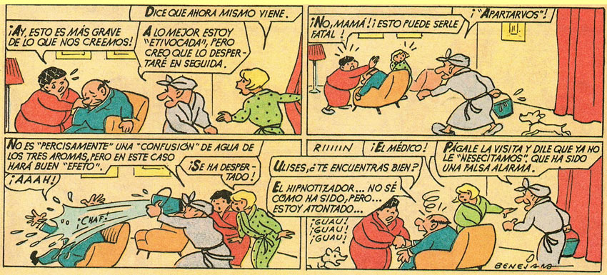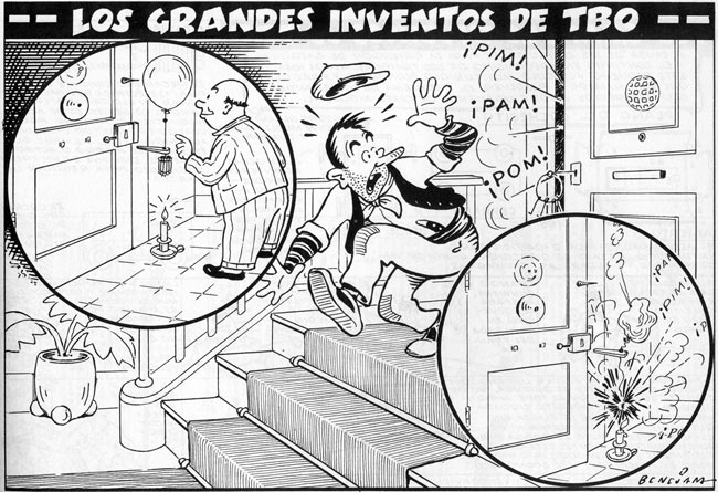 Benejam was also the creator of many comic pages without recurring characters, and signed some of them under pseudonyms like Rino, Ferrer or Bene. He regularly illustrated pages in the section 'Los Grandes Inventos de TBO', a feature where strange inventions by Professor Franz from Copenhagen were presented. Furthermore, Benejam created characters like 'Diego Pelenas' and comic pages for El Coyote, Flechas y Pelayos, KKO, La Risa and Nicolás.
