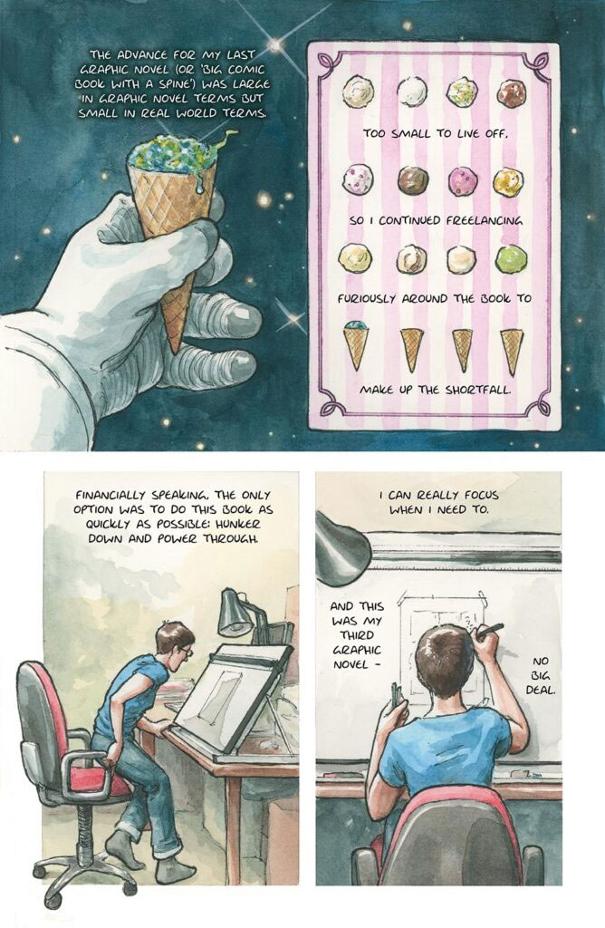 In 2023, Hannah Berry turned to graphic medicine with the comic story 'Needlestick' for The New England Journal of Medicine. Funded by the Exeter-Duke Collaboration Fund (2020-2021) and an Enhanced Research Award from the Wellcome Centre for Cultures and Environments of Health at the University of Exeter (2021), this comic was used to teach medical students about the role of shame in their training to become doctors. In the following year, Hannah Berry made a comic for 'Reading Bodies: Burnout, Overload and Resilience' (2024), a project in collaboration with the University of Exeter, focusing on the hardships, essential persistence and rewarding aspects of certain life goals in science and the creative arts. Her contribution dealt with comics: 'The Best Job In The World!'.