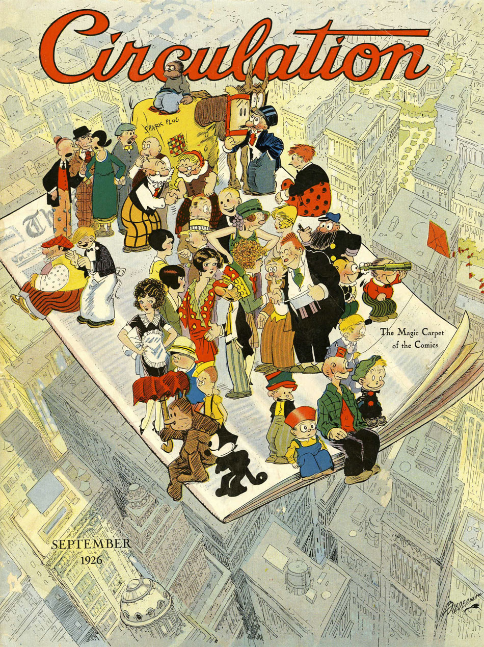 Biedermann's "The Magic Carpet of the Comics", published on the cover of Circulation magazine in September 1926.