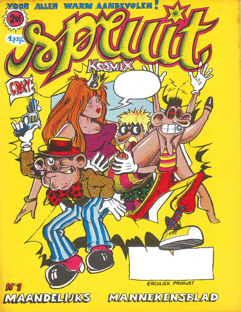 At first, the group established itself as the main (and only) representative of the Flemish underground comix scene with their self-published comix magazine Spruit (six issues between August 1971 and July 1972). Their main inspirations were revolutionary French satirical magazines like Hara-Kiri and the American underground comix movement. Even though it allegedly appeared in a print run of 15,000 copies, Spruit failed to attract a large audience, largely because of its poor printing quality and an overall lack of structure and organization among the creators.