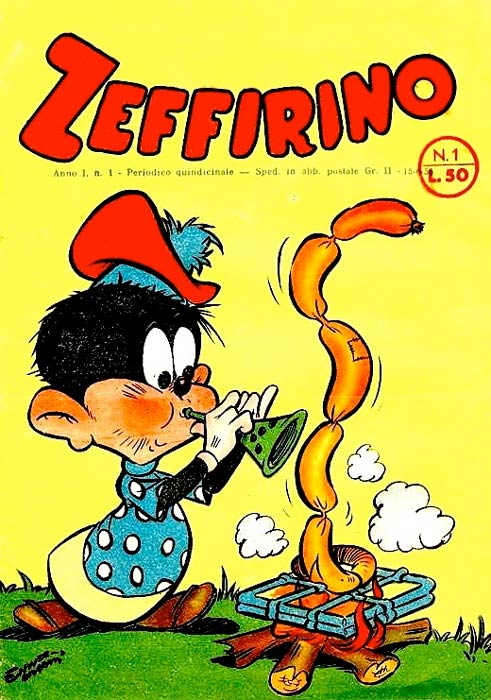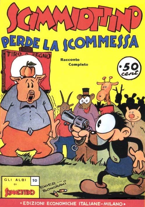 Bongrani returned to his pre-war creation, the monkey by now known as 'Zeffirino' and published by Edizioni Ariete. For the same title, he drew features like 'Orsetto', 'Pirillo e Bombetta', 'Mimmolo e Bombolo' and 'Giacomone'. Bongrani's 'Zefferino' popped up in a variety of other comic books of the time, from Ariete's Carioca (1954-55) to Omega's Eroi del West (1963-65). 'Ciccio e Arturo', another creation by Bongrani, also appeared in Carioca. Enver Bongrani was for a long time a bit of a mystery in Italian comic history, but thanks to research by Giancarlo Malagutti and Luca Boschi more information about him came to light.