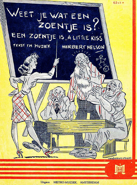 Cover illustration for the sheet music book 'Weet Je Wat Een Zoentje Is?'.