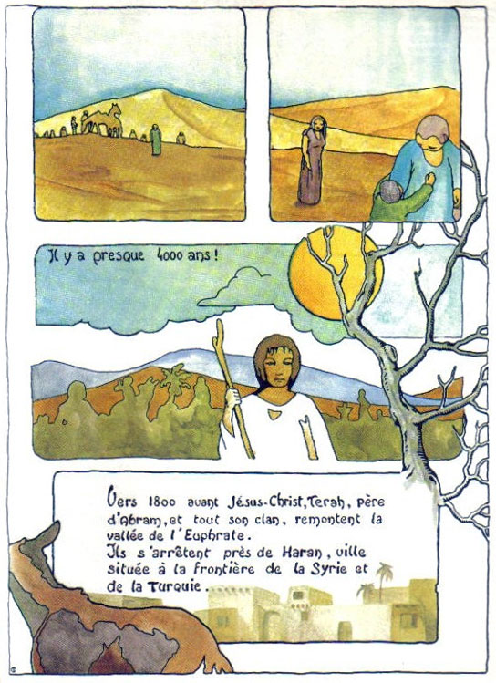 Using a pop art-inspired drawing style, he illustrated the second installment of the 1979 collection 'La Bible - Ancien Testament', dealing with the story of Abraham. Written by René Berthier, the collection's four other volumes were illustrated by Bruno Le Sourd (#1 and 5) and Jean-Marie Vivès (#3 and 4).