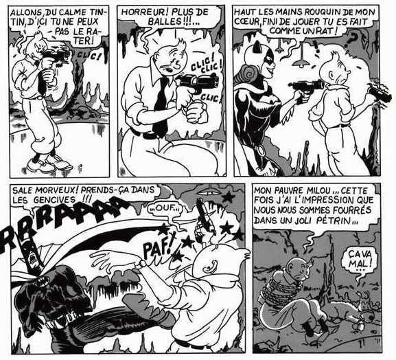 In 1991, Bournazel was one of several comic artists to make a graphic contribution to the official 'Tintin' homage album 'Fétiche Arumbaya' (1991). A couple of years later, he drew the 28-page parody comic 'Tintin Contre Batman' (L'Oeil du Pirate) under the pseudonym Hergi. The story pitches Hergé's quiffed reporter Tintin against Bob Kane and Bill Finger's creation Batman, fighting it off in Gotham City. At first, the maverick crime fighters regard each other as rivals, but they eventually team up to find Tintin's kidnapped dog Snowy. Bournazel also made a few posters based on this comic strip. 'Tintin vs. Batman' was reprinted again in 2008 and 2015.
