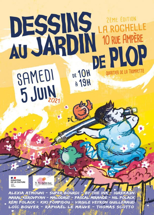 Poster for the 2021 Dessins Au Jardin de Plop art event in La Rochelle, co-organized by Charlotte Rouet.