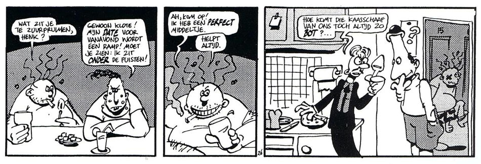 Between 1993 and 2001, Van Broekhoven and Damen lightened up the comic news magazine Zozolala with 'De Collectioneur' (June 1993-2001), a corny humor strip about a typical comic book collector, poking fun at several people from the Dutch comics scene. In 1999, De Leidsche Stripshop released one book collection with a selection of the strips. In 1995, the duo additionally created 'Je Tante Zeker!' in Ragazzi, an absurd comic strip for the children's section of BN/De Stem magazine.