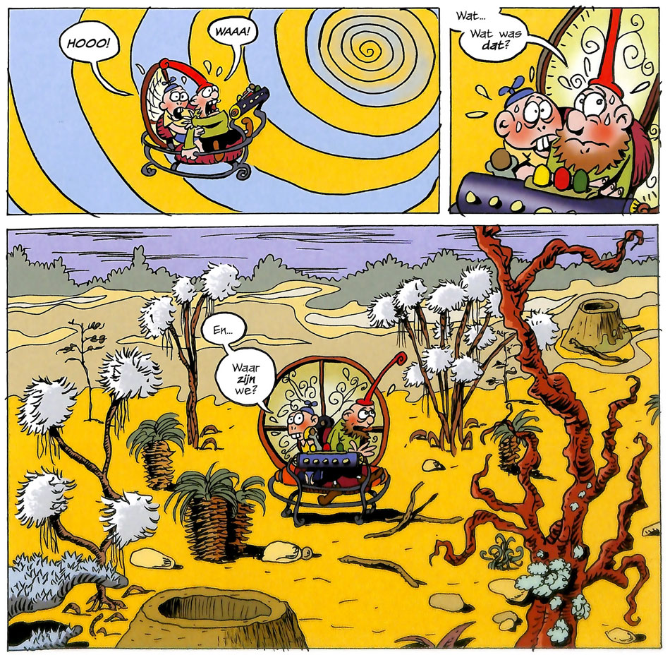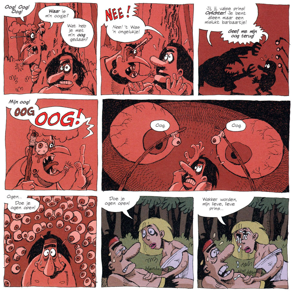 The young, dorky barbarian Jodocus is expelled from his tribe of rough guys. Through a coincidental turn of events, he is confused with Prince Folio and meets a lovely princess. His involvement with her incurs the wrath of her father, a dark magician, and everything turns for the worst. Unfortunately, Van Broekhoven's epic humor serial didn't appeal to the Eppo readers, and the serialization was canceled after the first story. However, between 2012 and 2019, Marq van Broekhoven created four additional adventures, published directly in book format by Strip2000 and Syndikaat.