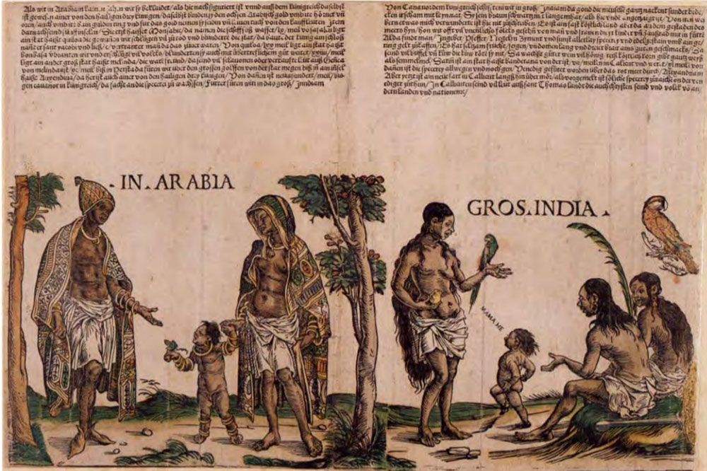 In 1508, Burgkmair produced the 'People of Africa and India' series. These woodcuts were based on the descriptions of explorer Balthasar Springer who, between 1505 and 1506, traveled from Africa to India. Emperor Maximilian I took a personal interest in other continents, partially out of curiosity, but also for colonial purposes. Historically, the series gives us an idea how white Europeans regarded indigenous people from North African, Middle Eastern and South-Central Asian countries. The 'People of Africa and India' series is additionally notable for featuring events and characters that are thematically connected. They have to be read in combination with the descriptions underneath the images, making them early examples of text comics.