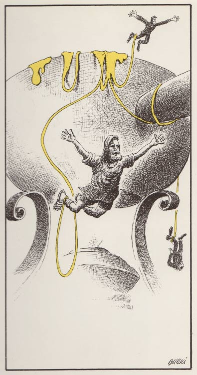 He turned to fulltime cartooning in 1978 and remained the regular cartoonist for this Swiss newspaper for 38 years, until his retirement in September 2014. The paper's publisher also released annual collections of his work from 2000 to 2014. Burki furthermore made witty drawings for the magazine Bilan and in Die Sonntagszeitung. Over the course of his career, he has published about 8,000 drawings, and received many awards for his work, both in Switzerland and in France. His style is characterized by a thin line and an almost complete absence of text. As a caricaturist, his preferred targets were mostly women and politicians, but rarely with malice. Raymond Burki passed away in the night of 28 and 29 December 2016, following a long battle with cancer.