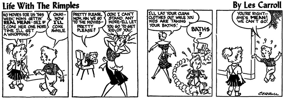 Carroll's final own creation, 'Life with the Rimples', was also a family strip, but this time in a more suburban setting. It ran on a weekly basis between 1961 and April 1975.
